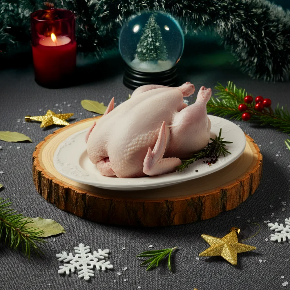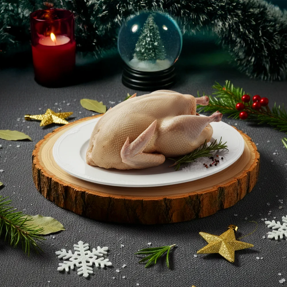 Dinde fermière entière. Un classique des fêtes à la chair ferme et au goût authentique.