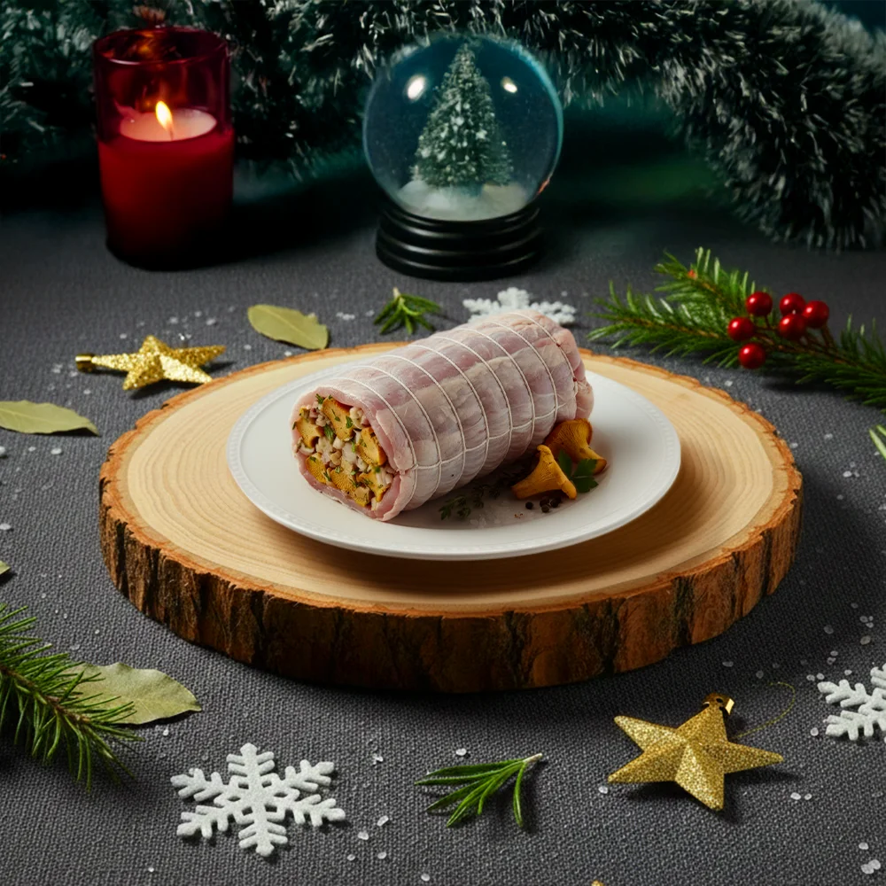 Paupiette de pintade farcie aux Girolles. Prête à cuire, pour une saveur forestière.